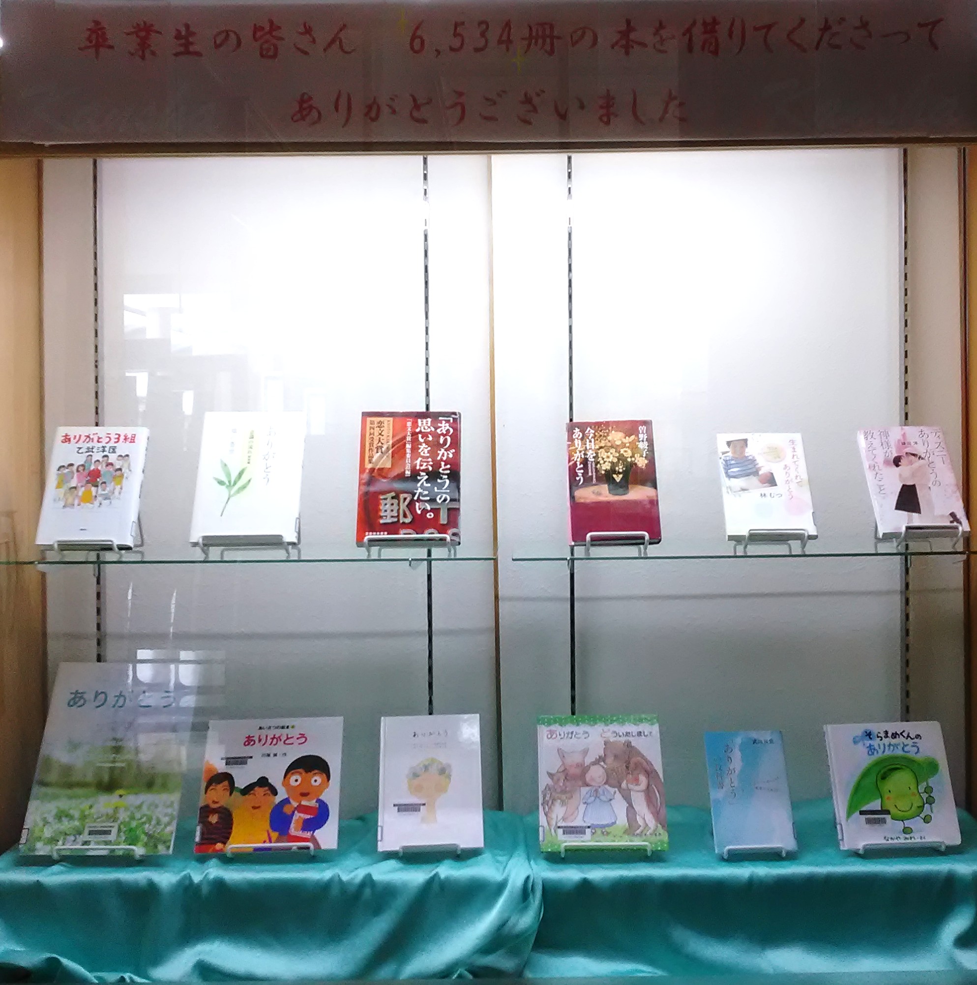 【2026年3月9日】 卒業生の皆さん、卒業おめでとうございます。 皆さんが、在学中に借りた本の冊数を数えました。 たくさん借りてくださいましたね。 ありがとうございました。 『卒業生の皆さん 6,534冊の本を借りてくださってありがとうございました』展示図書一覧